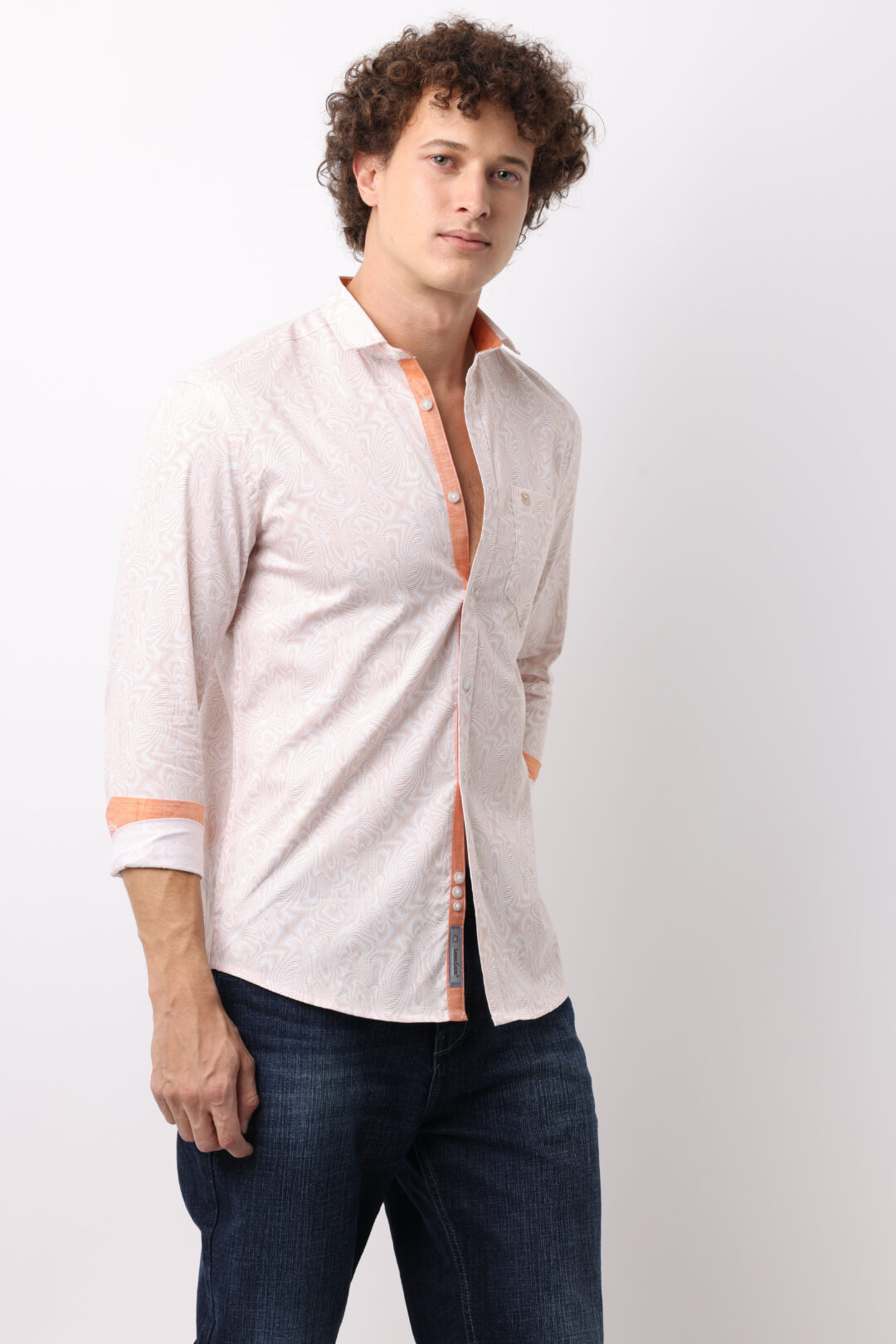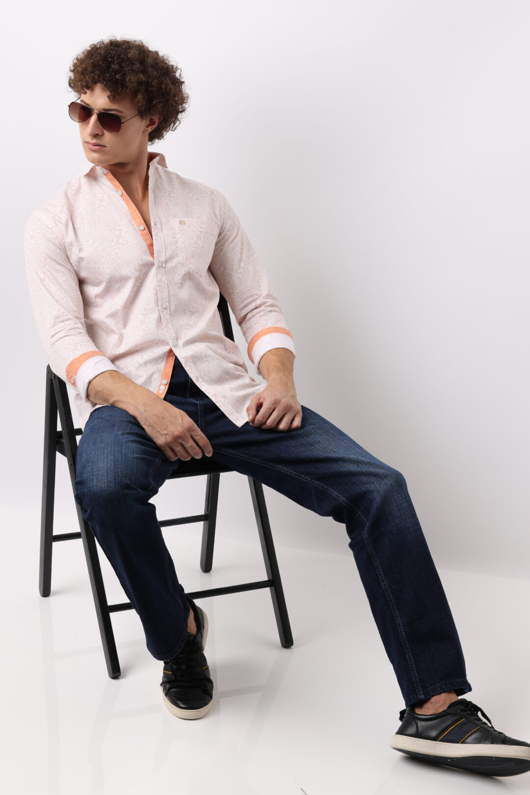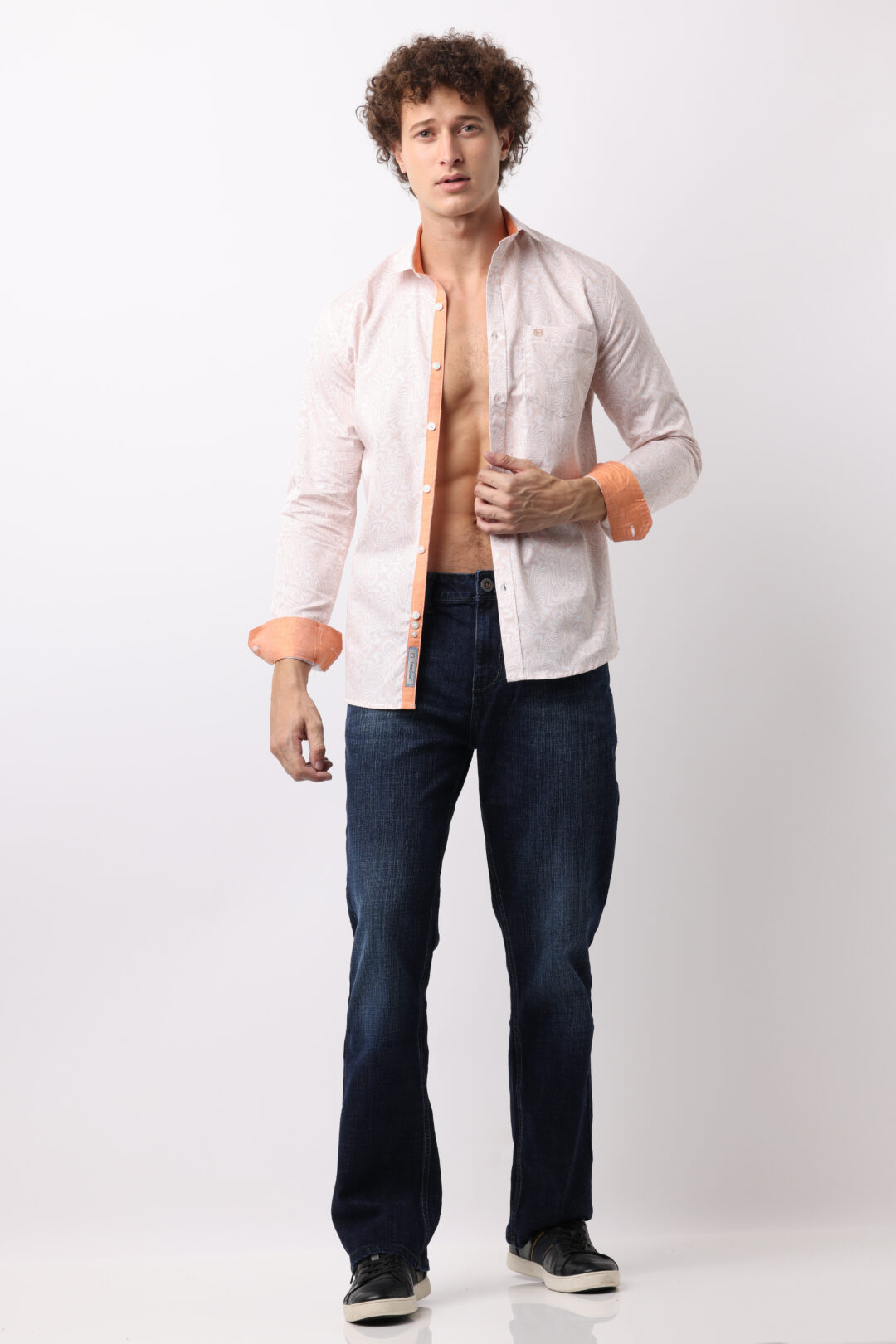 Paired with chinos or denim, this antique white with apricot print shirt can elevate your ensemble. Whether you’re attending a gathering or enjoying a casual day out, this shirt is an essential piece for fashion-forward men.