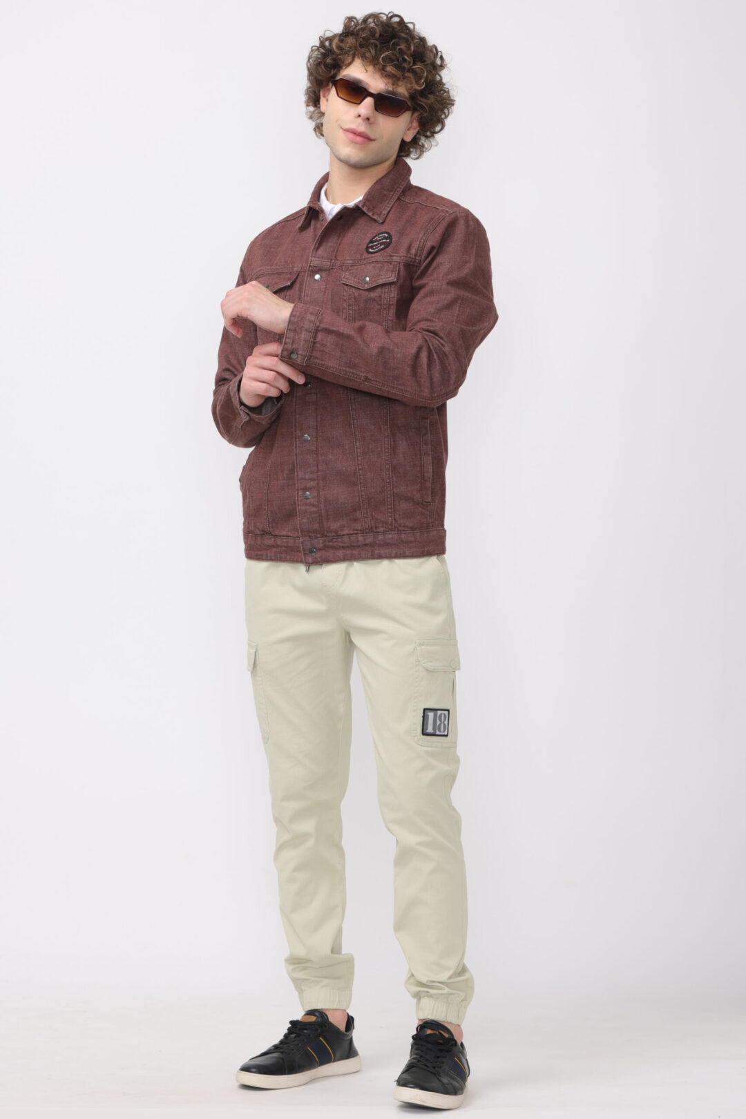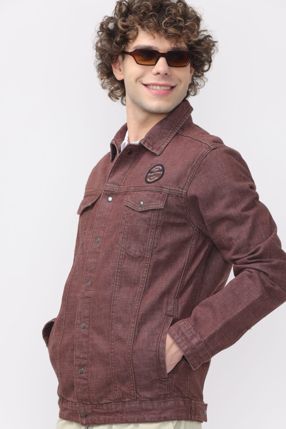The Burgundy Denim Jacket features a unique double pocket design, allowing you to carry essentials with ease. Both pockets are strategically placed for convenience and added utility.