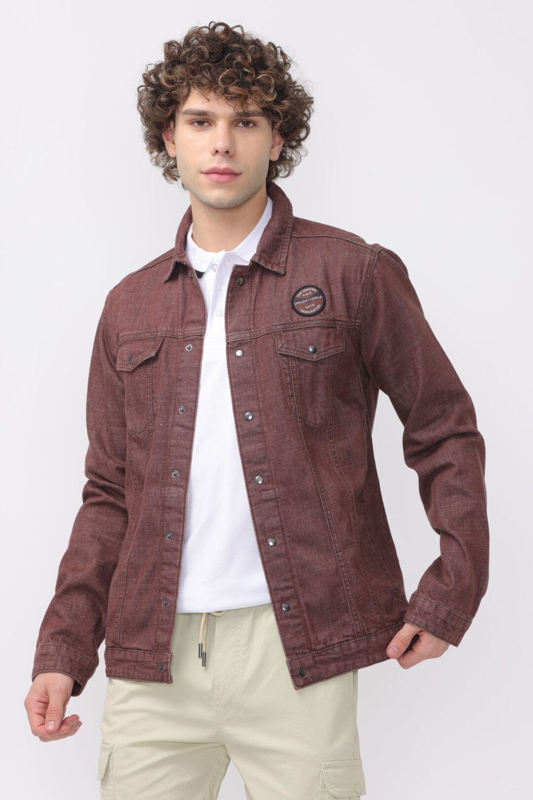 Our stylish Burgundy Denim Jacket, perfect for those who appreciate a blend of elegance and functionality. This jacket is a wardrobe essential, tailored to meet your fashion and practical needs.