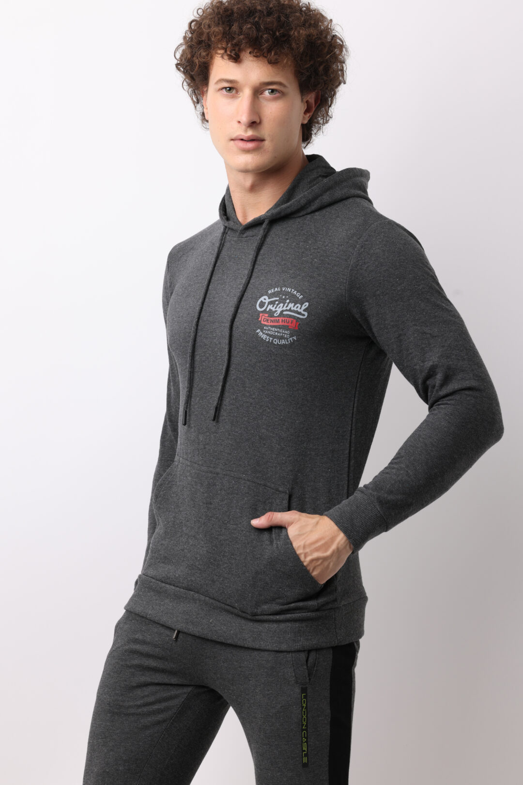 With a spacious front pocket and adjustable drawstring hood, this men’s charcoal hoodie combines style with practicality. It’s ideal for carrying your essentials or keeping your hands warm during brisk outings.