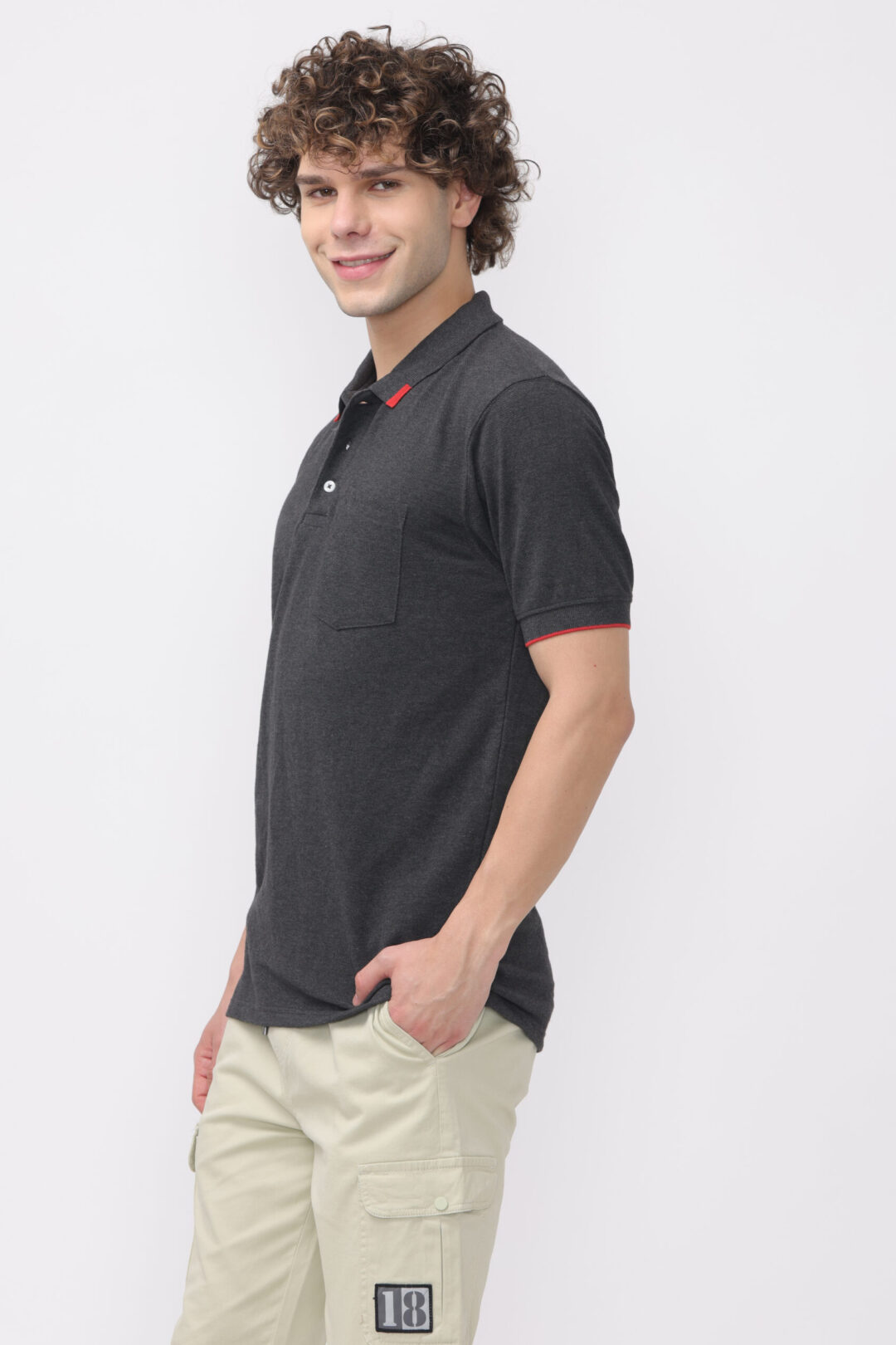 The Charcoal with Crimson tip Polo T-Shirt is a classic piece that strikes a perfect balance between casual and sophisticated. Charcoal color adds a touch of elegance to any wardrobe, making it ideal for both casual outings and semi-formal events.