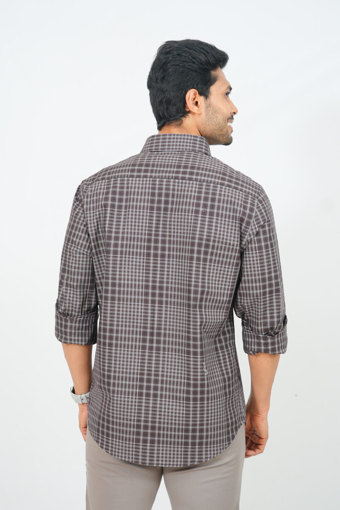 The men’s full sleeve Choco Grey Plaid shirt is designed to offer a flattering fit for any body type. Available in various sizes, it guarantees that you’ll find the perfect match. Elevate your style effortlessly with this must-have shirt.