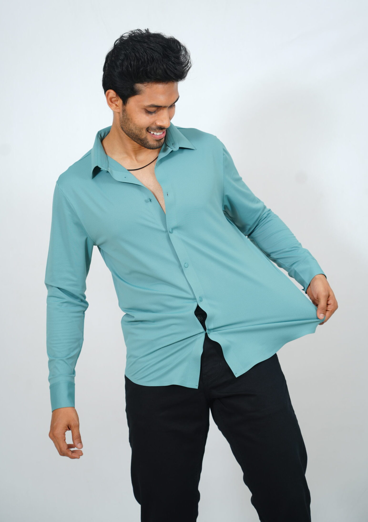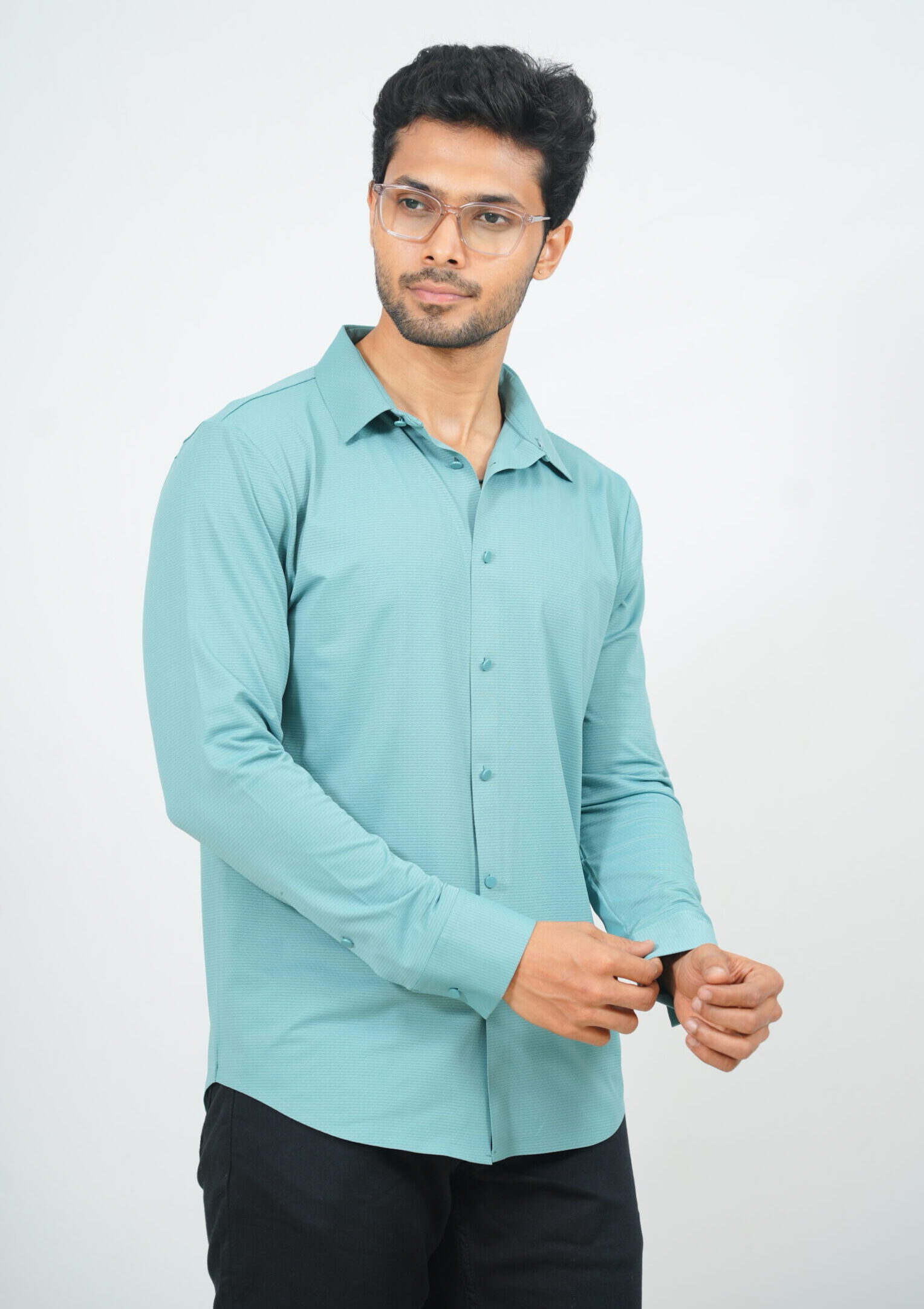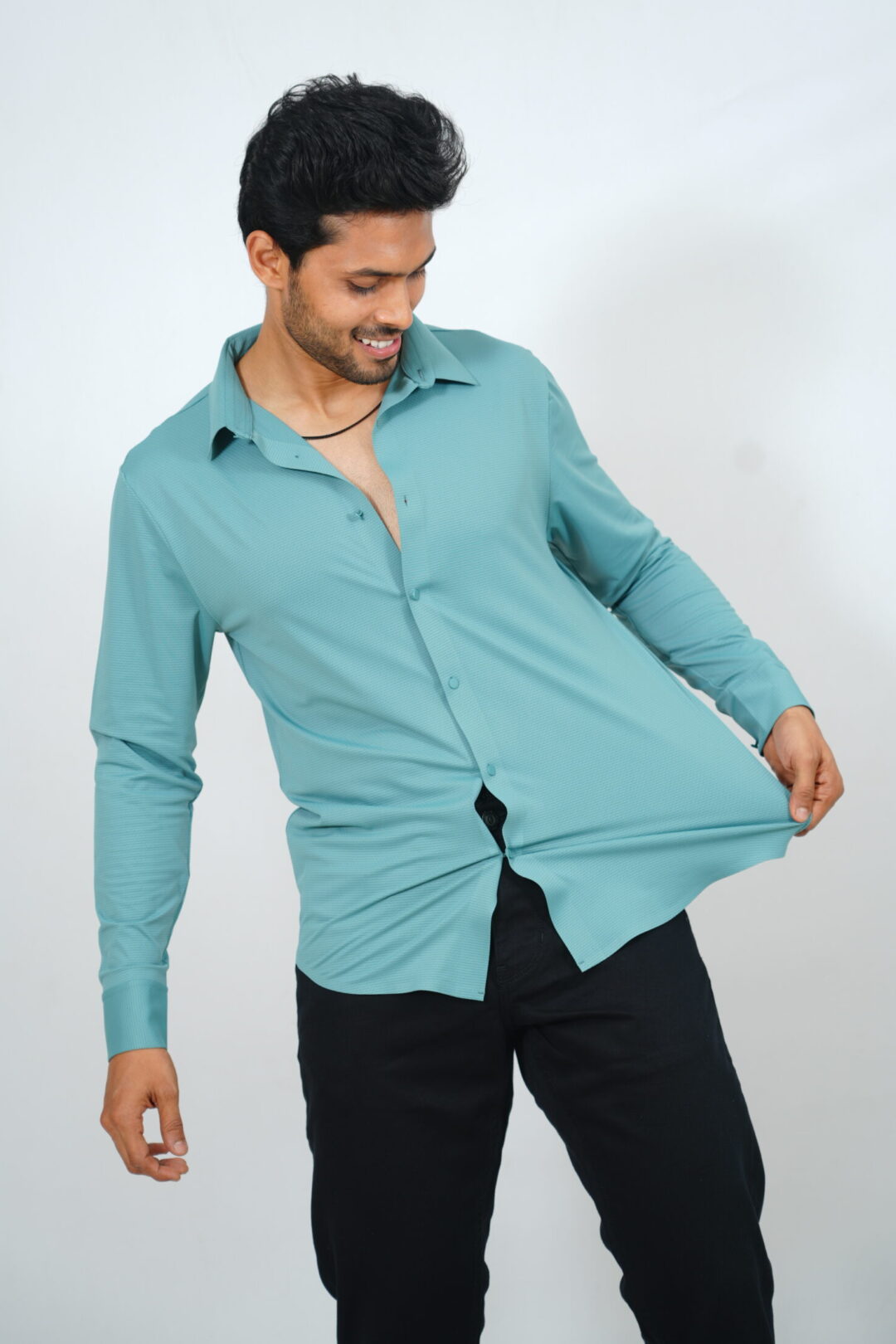 Introducing our men’s full sleeve cyan flux shirt, a perfect blend of modern style and timeless elegance. The unique design adds a touch of sophistication to your wardrobe, making it ideal for both casual outings and formal events.