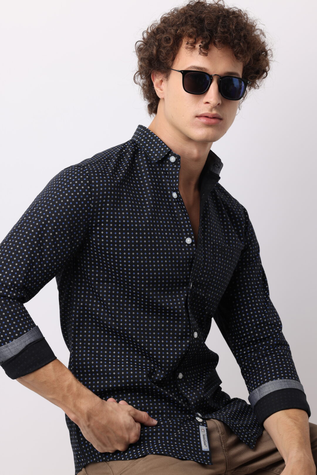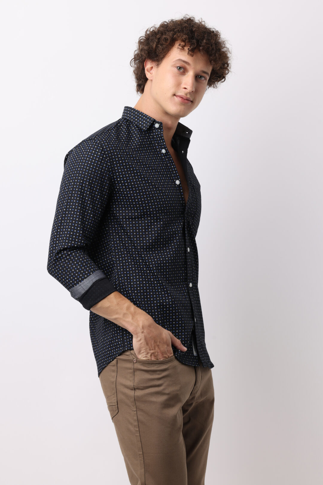 The men’s full sleeve electric onyx print shirt is truly a standout piece for any wardrobe. Featuring a unique electric onyx print, this shirt makes a bold statement while remaining versatile enough for various occasions.