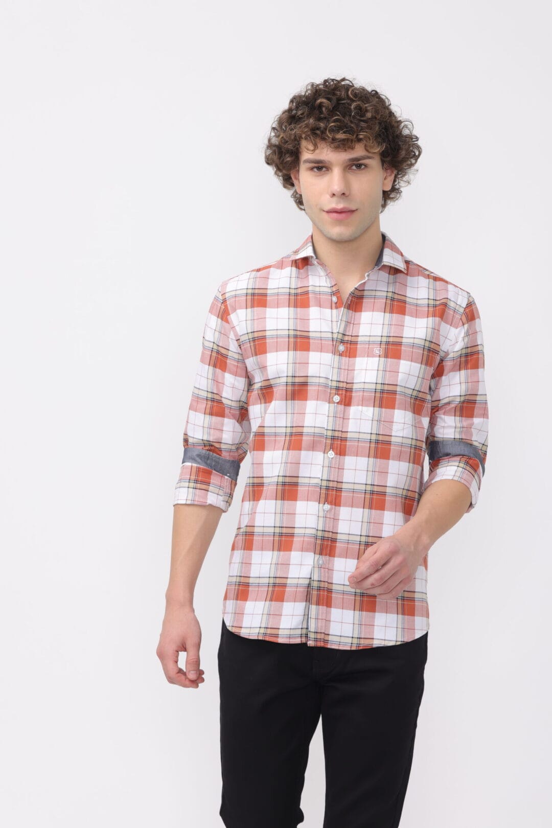 Crafted from premium materials, the orange checks shirt is durable and easy to maintain. Its quality stitching ensures long-lasting wear, providing you with a staple piece for your wardrobe.