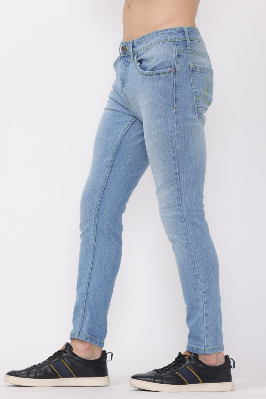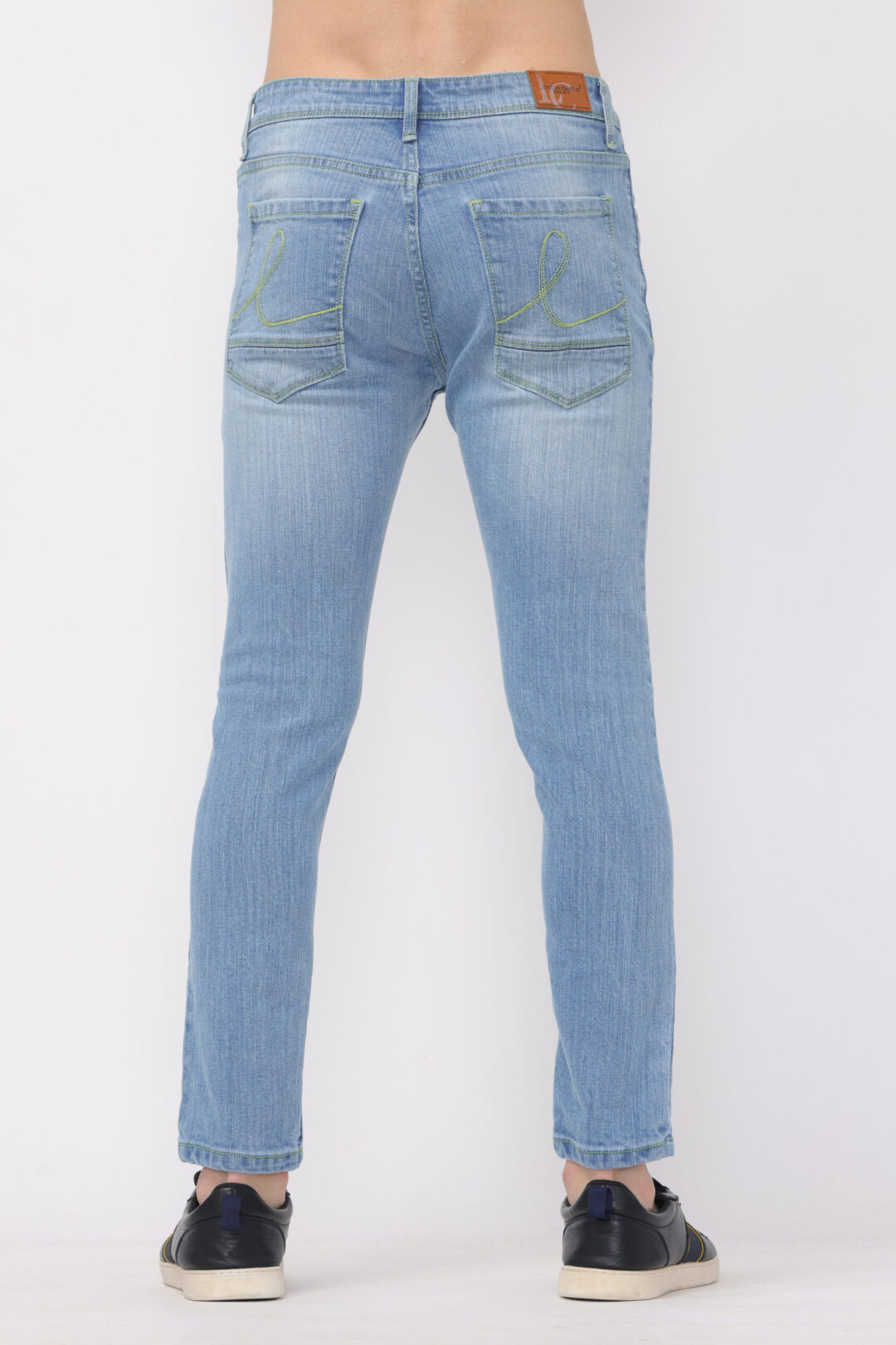 Our Indigo light wash with Neon Green Thread Ankle Fit Jeans are designed to offer unmatched comfort and style. Tailored to fit snugly around your ankles, these jeans provide a sleek, modern silhouette without compromising on comfort.