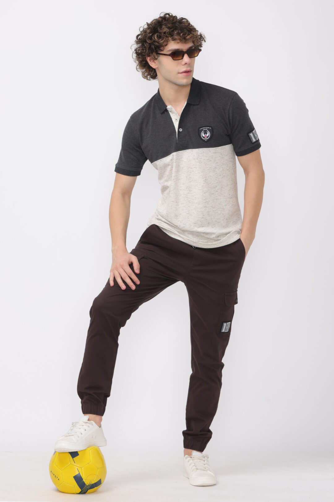 Our Ivory with Charcoal Cut and Sew Combo Polo T-shirt stands out for its unique design and superior quality. It offers versatility, pairing easily with jeans, chinos, or shorts. Trust in the blend of comfort and style to elevate your fashion game.