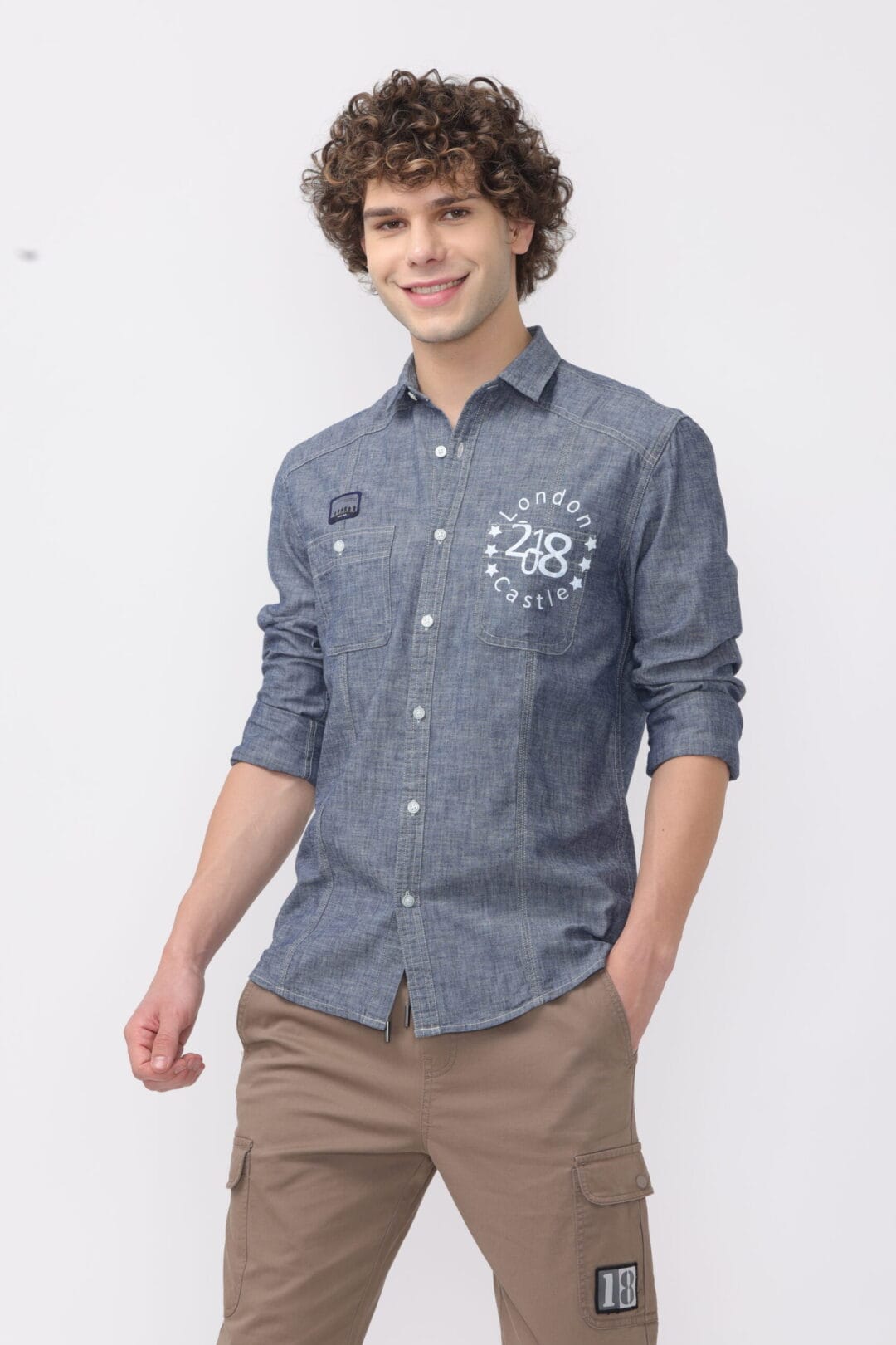 Introducing our full sleeve men’s marble indigo denim double pocket jacket, a versatile addition to modern wardrobes. With its classic denim fabric and tailored fit, this jacket seamlessly blends style and comfort.