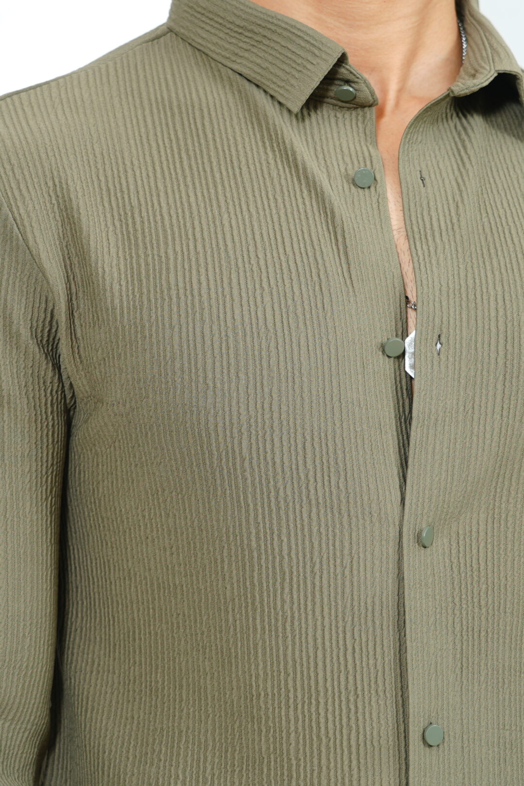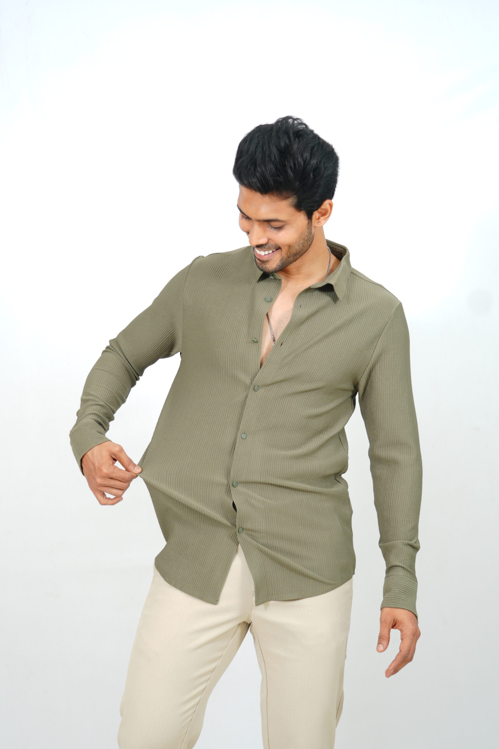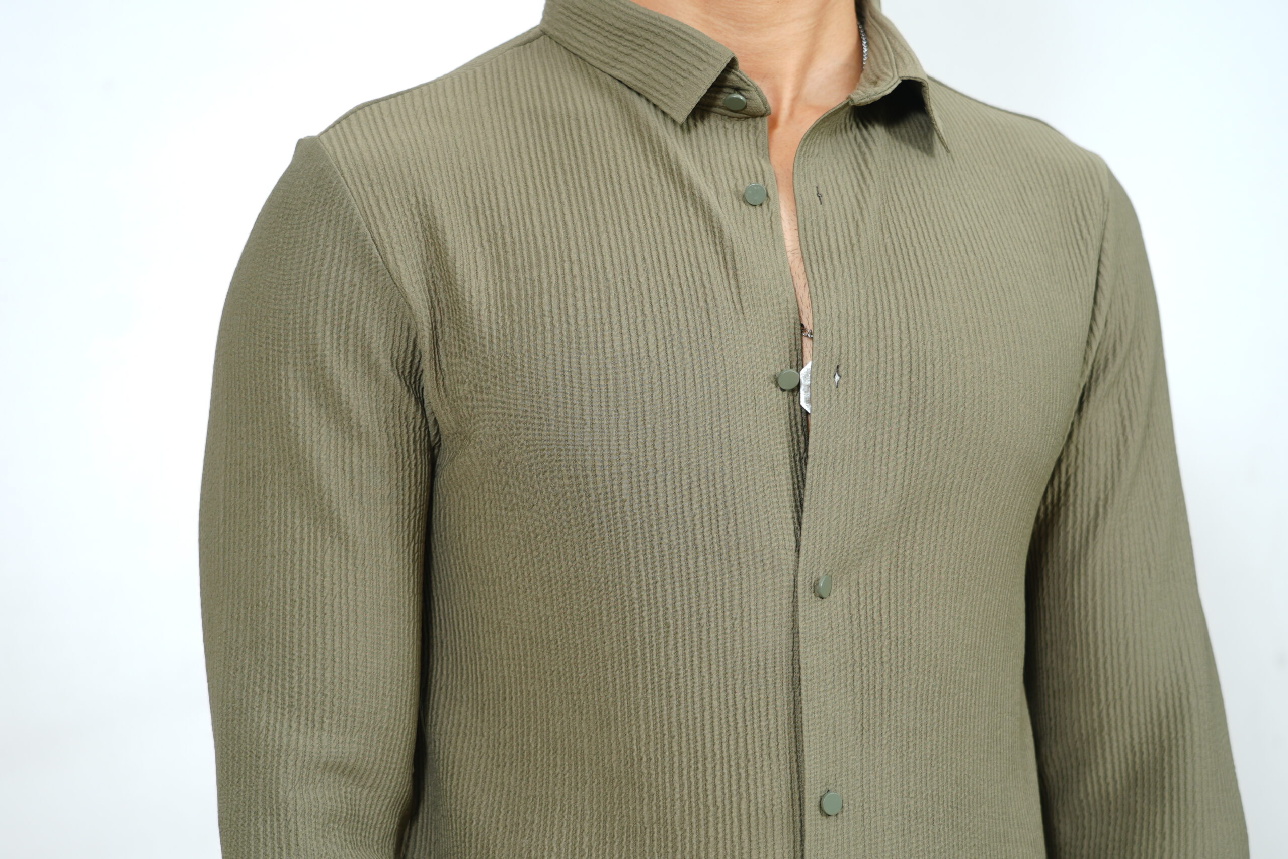Introducing our men’s full sleeve olive track shirt, a perfect blend of modern style and timeless elegance. The unique design adds a touch of sophistication to your wardrobe, making it ideal for both casual outings and formal events.