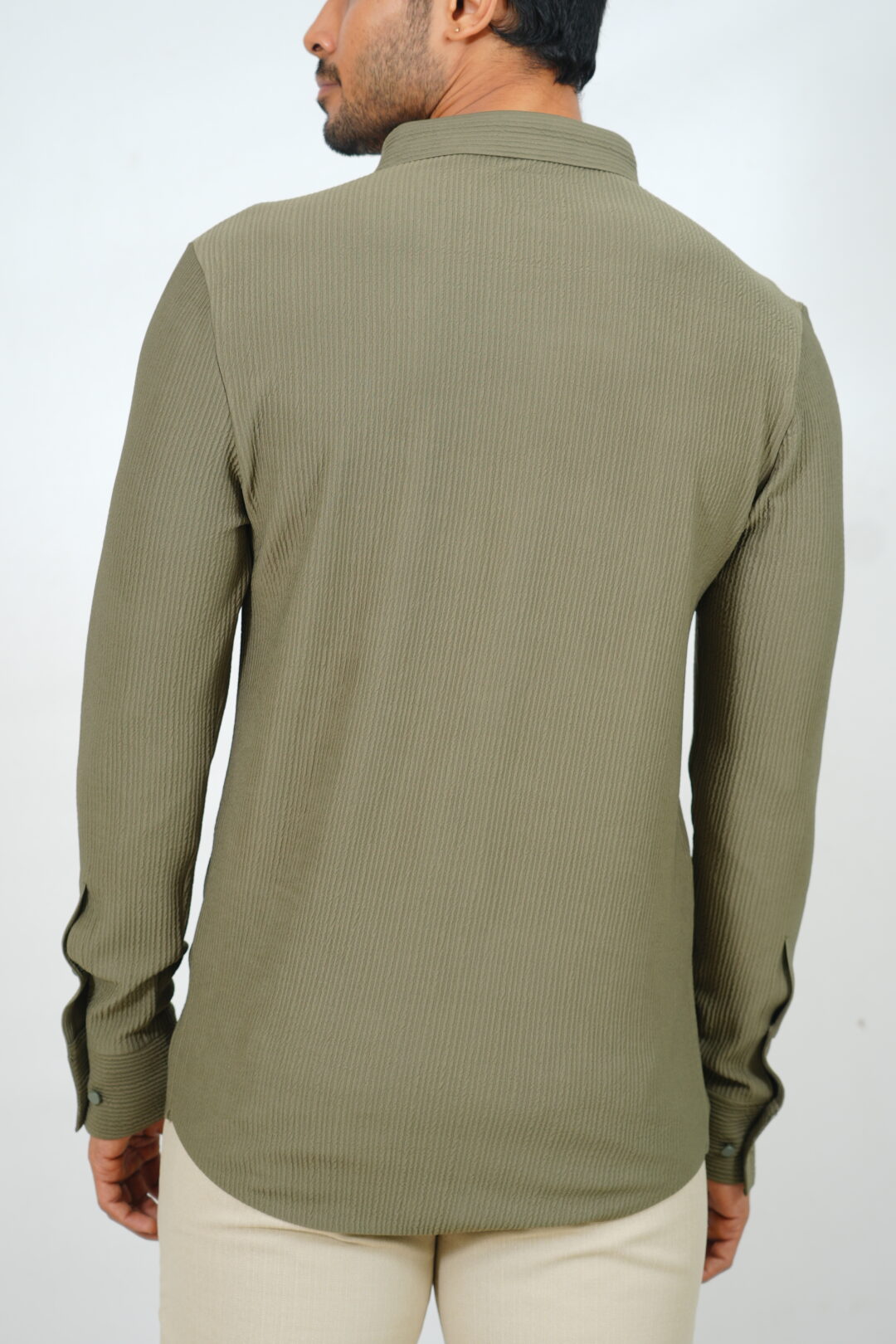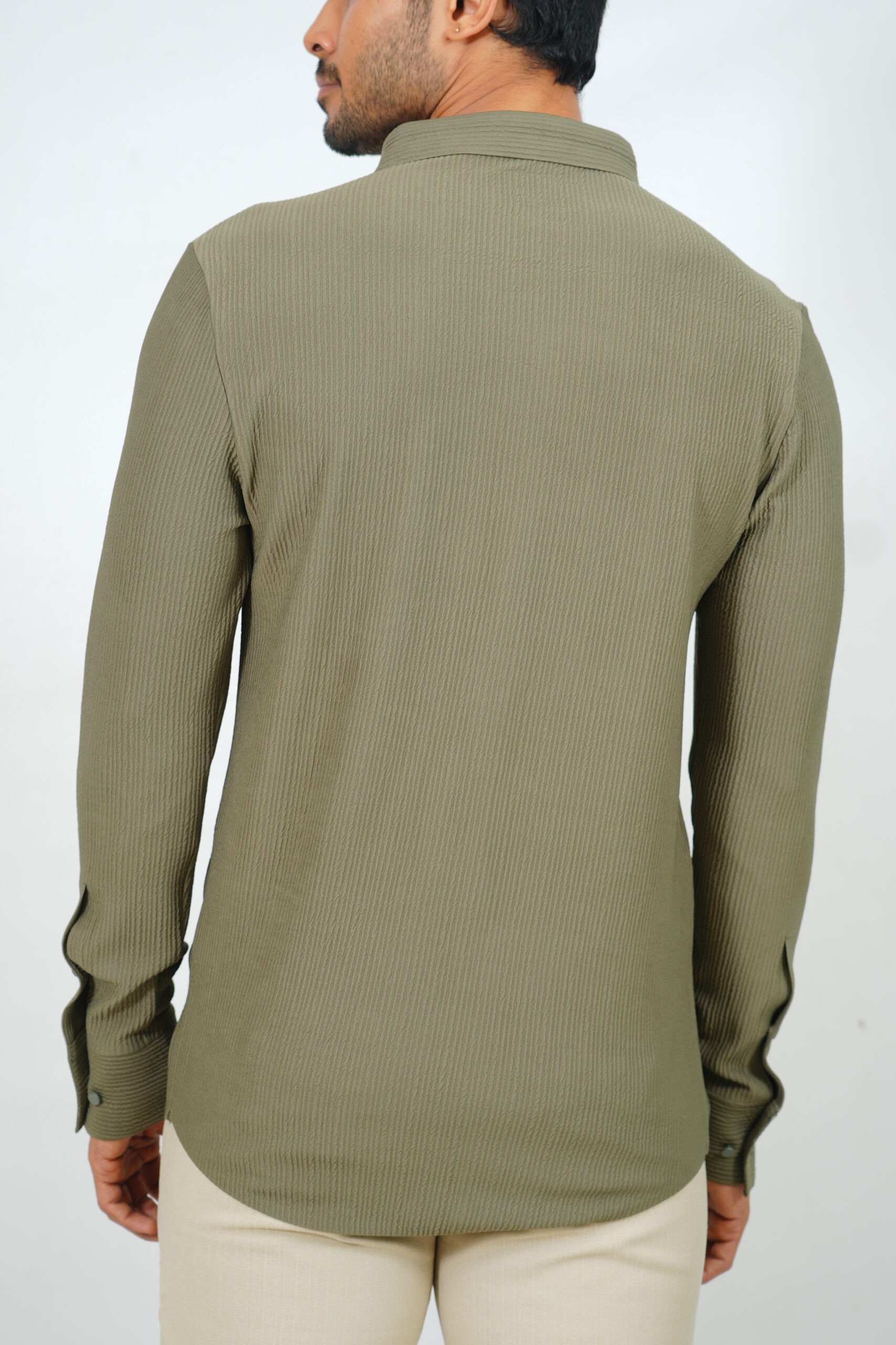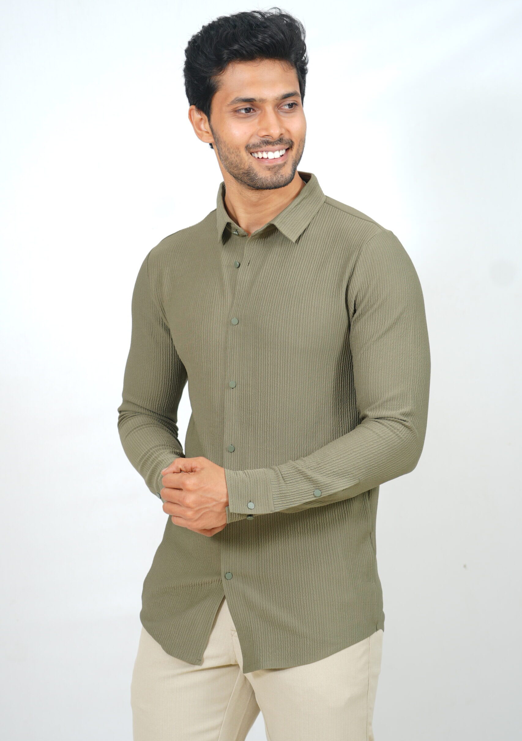 Introducing our men’s full sleeve olive track shirt, a perfect blend of modern style and timeless elegance. The unique design adds a touch of sophistication to your wardrobe, making it ideal for both casual outings and formal events.