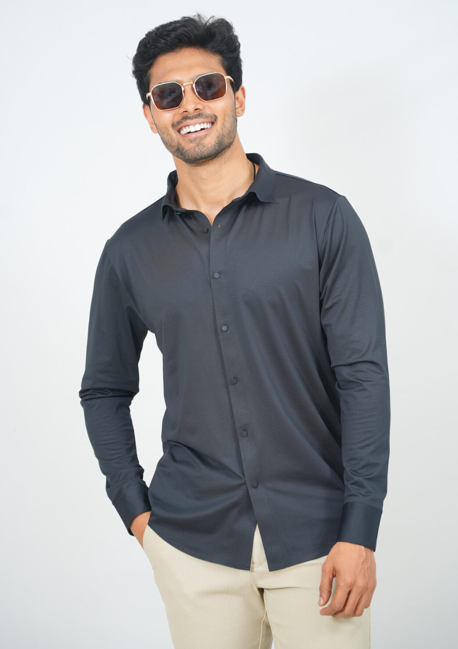 Introducing our men’s full sleeve onyx flux shirt, a perfect blend of modern style and timeless elegance. The unique design adds a touch of sophistication to your wardrobe, making it ideal for both casual outings and formal events.