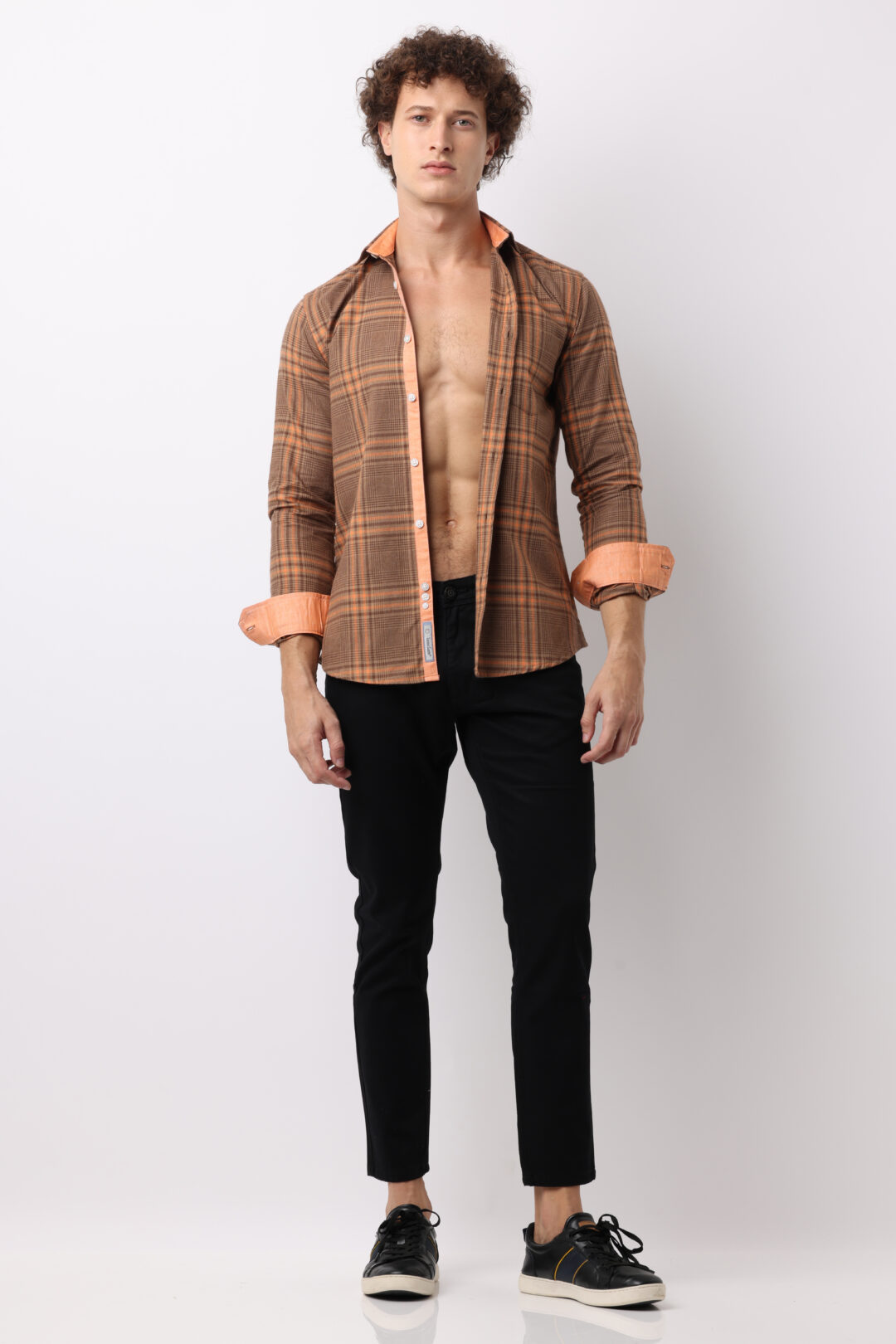 Whether you’re dressing up for a formal event or going for a casual outing, this men’s full sleeve shirt can be paired with jeans or trousers. Its unique plum color and cinnamon checks add a touch of elegance to any ensemble.