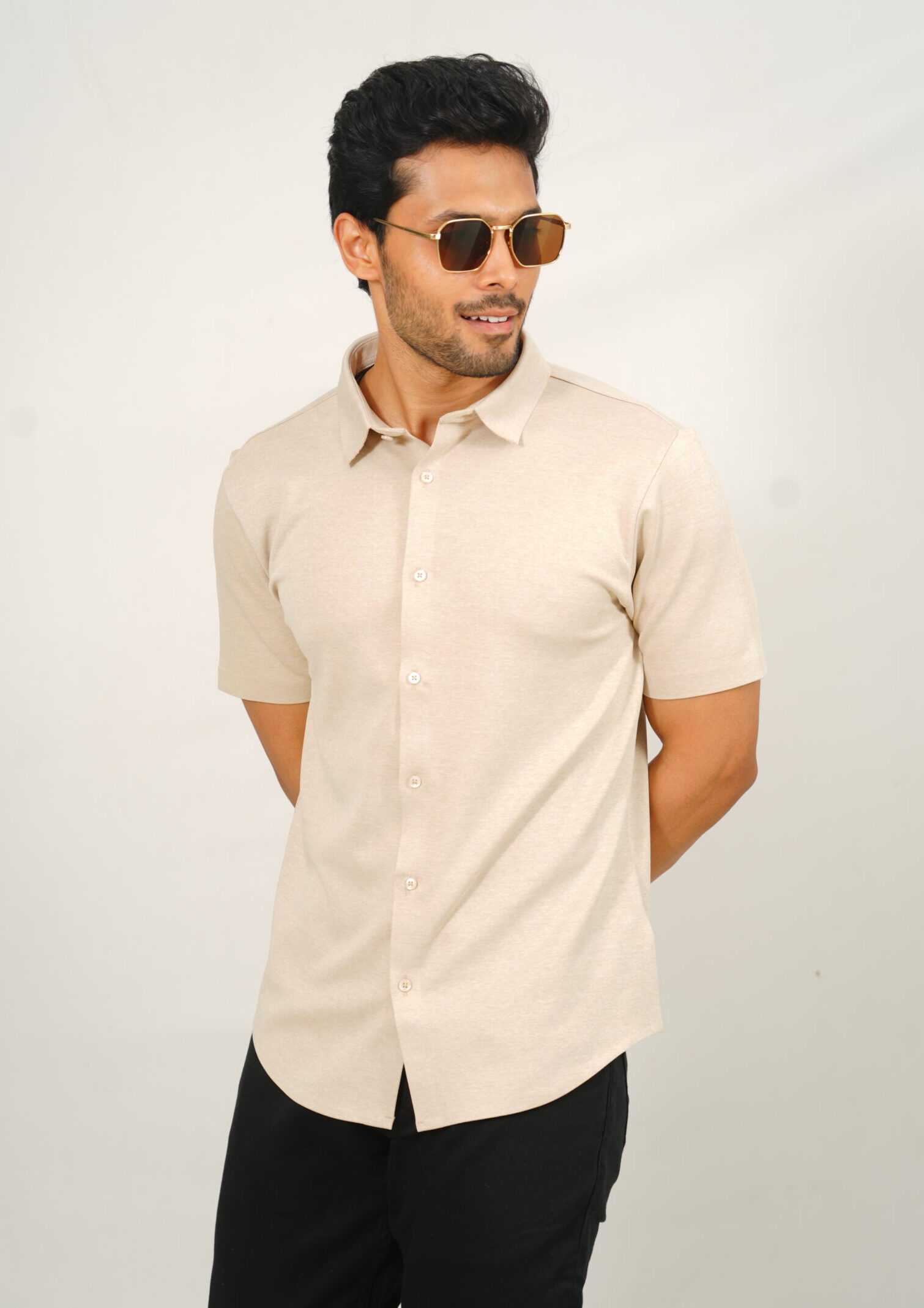 The men’s half sleeve sand blend shirt is designed to offer a flattering fit for any body type. Available in various sizes, it guarantees that you’ll find the perfect match. Elevate your style effortlessly with this must-have shirt.