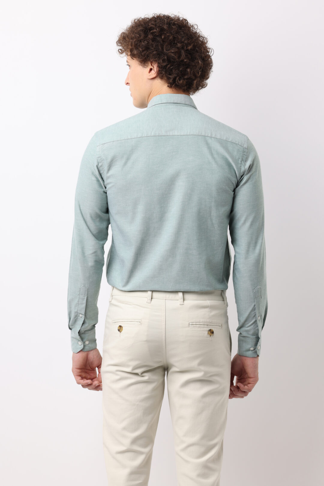 Our full sleeve men’s seafoam oxford shirt is not only stylish but also easy to care for. The durable fabric withstands regular washing, ensuring that it maintains its shape and color. Upgrade your wardrobe with this timeless piece today!